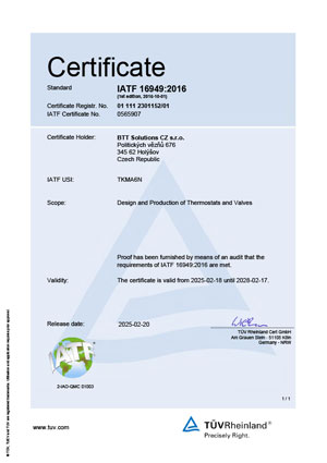 The Thermostats and Valves division of MAHLE (Behr Thermot-tronik) is now BTT (Beyond Thermal Technology) Solutions.